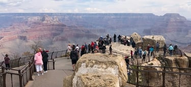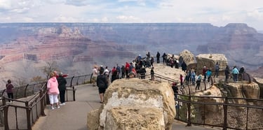 Entre o North e o South Rim, escolhemos e recomendamos a visita ao South Rim, justamente por ter mais estrutura: tem ruas e estradas para seguir, é possível fazer grande parte de carro e é, inclusive, acessível para pessoas com mobilidade reduzida. Cerca de 90% dos turistas que visitam o Grand Canyon anualmente o fazem pelo South Rim para usufruir dos hotéis, restaurantes, estrutura e acessibilidade. Além da estrutura, o South Rim tem a vista considerada mais privilegiada.